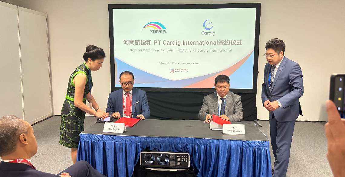 2月21日,河南航投與印度尼西亞卡迪格航空集團(tuán)(Cardig)在新加坡航展期間簽署諒解備忘錄,在航空培訓(xùn)、航空運(yùn)輸及航空基礎(chǔ)設(shè)施建設(shè)等領(lǐng)域開展全方位戰(zhàn)略合作。隨后,雙方子公司廣東優(yōu)翼航空技術(shù)有限公司(以下簡稱優(yōu)翼仿真)與雅加達(dá)航空培訓(xùn)中心(以下簡稱JATC)簽訂合作協(xié)議。