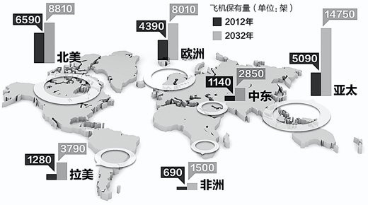 據《費加羅報》報道,中產階層占全球人口比例將由2012年的30%上升至20年后的60%,其中亞太地區增長尤其迅猛,中產階層人口將由2012年的7.46億上升至2031年的34億。而亞太地區正是航空市場發展最快的地區。