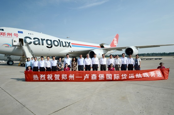 6月27日15點30分,一架滿載歐洲商品的波音747-8F全貨機平穩(wěn)降落在鄭州新鄭國際機場(以下簡稱鄭州機場),這架目前國際上最先進的貨機巨無霸被命名為“鄭州號”,來自盧森堡國際貨運航空公司(以下簡稱盧貨航);當晚,它將滿載中國的貨物,從這里直飛盧森堡芬德爾機場。一來一去,標志著“鄭州-盧森堡”中歐雙樞紐戰(zhàn)略進入實質(zhì)性運營階段,橫貫中歐的貨運“空中絲綢之路”成功開通,盧貨航成為入駐鄭州機場的首個國際貨運航空基地公司,鄭州向國際貨運樞紐的目標又邁近了一步。